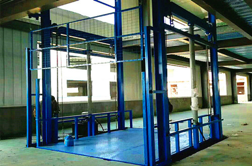 固定式剪叉式升降貨梯是靠剪刀式支撐架的展開與折疊來完成貨物平臺升降的,以錳鋼矩形管作為吊裝機構,將物品從一定高度提升到另一個