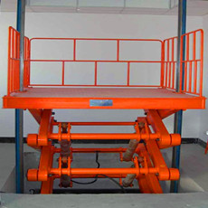 固定式剪叉式升降貨梯是靠剪刀式支撐架的展開與折疊來完成貨物平臺升降的,以錳鋼矩形管作為吊裝機構,將物品從一定高度提升到另一個